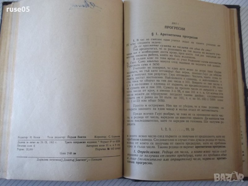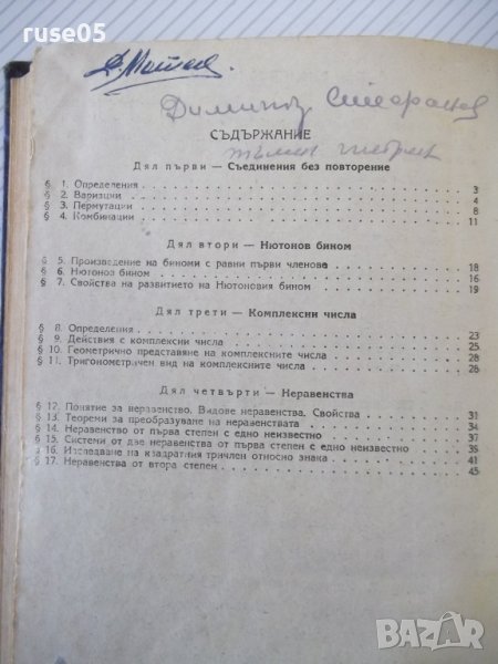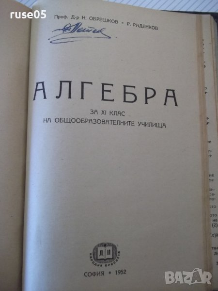 5. Алгебра за XI клас на общообразователните училища - 52 стр. - 1952 г. - проф. д-р Н. Обрешков / Р. Раденков