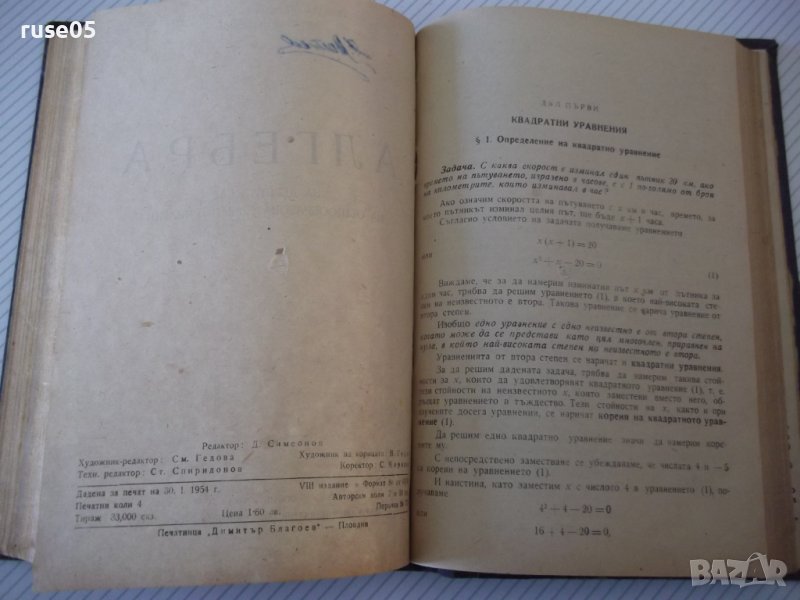 2. Алгебра за VIII клас на общообразователните училища - 148 стр. - 1954 г. - Макавей Ганов / Васил Цървенков