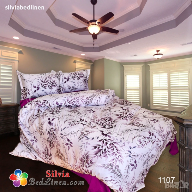 Луксозен спален комплект от сатениран памук, изключително мека и нежна материя,отличаваща се с много малка свиваемост поради голямата гъстота на тъкане и устойчивост на цветовете при многократно изпиране.Памук - сатенът е приятен на допир и създава усещане за уют и спокойствие.Опитайте!