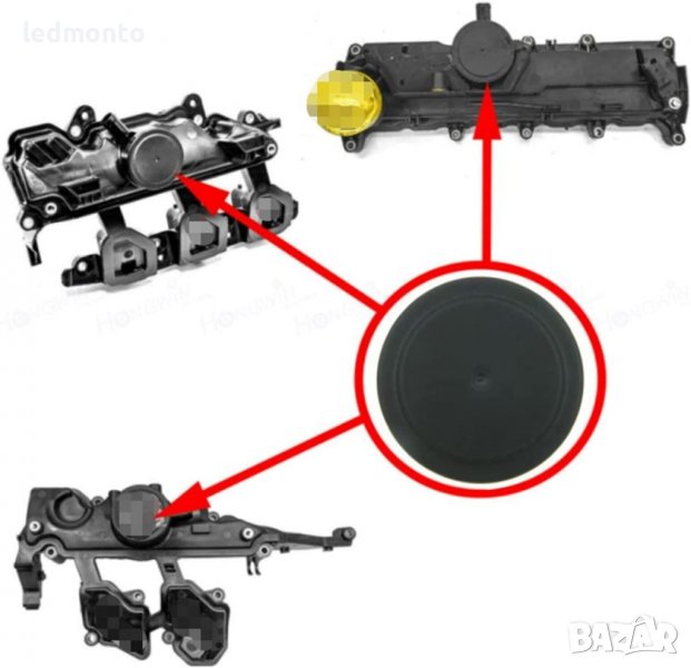 Моля сравнете вашата мембрана, капачка картерни газове по размери и форма .