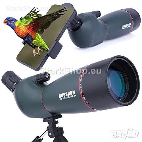 Водоустойчив трипод монокъл със стойка за телефон COBRA, който се характеризира с висококачествена изработка. Един качествен артикул за наблюдение на птици, спортни събития, лов, риболов, излети сред природата и др. Монокълът предлага оптическо увеличение 25х75, разстояние на наблюдение – от 1500-9500м, зрителен ъгъл – 8000м. Фокусът се регулира чрез въртящия бутон в средата на монокъла. Комплектът съдържа трипод и универсална стойка за телефон, която можете да свържете към всеки един уред с определено увеличение. Когато използвате стойката ще можете бързо и лесно да снимате, всичко което се намира на далечни разстояния, и файлът ще се запамети директно на телефона ви.