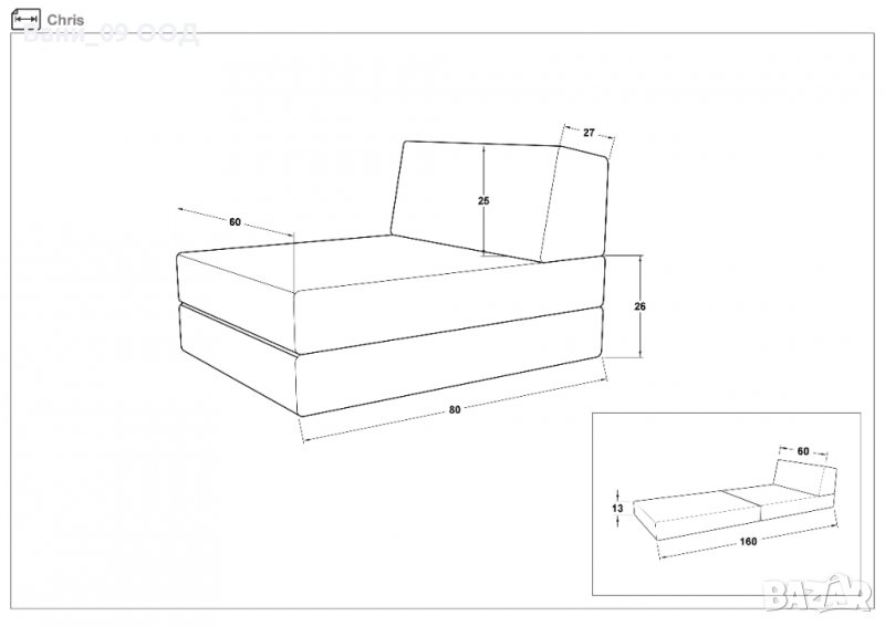 Разтегателният фотьойл е уникално предложение, допълващо обзавеждането в детските стаи. Всички деца предпочитат да се забавляват, играят или учат на пода у дома. Пълнежът му е изграден от еластичен пенополиуретан, с подходящата плътност и мекота. Дамаската, с която е облечен фотьойлът е здрава, приятна на допир материя с отлична устойчивост на износване и лесна за поддръжка структура. Крис е лек, компактен и изключително удобен за използване от всички у дома. При необходимост от почистване, дамаската лесно може да се сваля и поставя обратно. Дизайнът на облегалната възглавница позволява да се обръща и поставя в удобна височина и позиция.