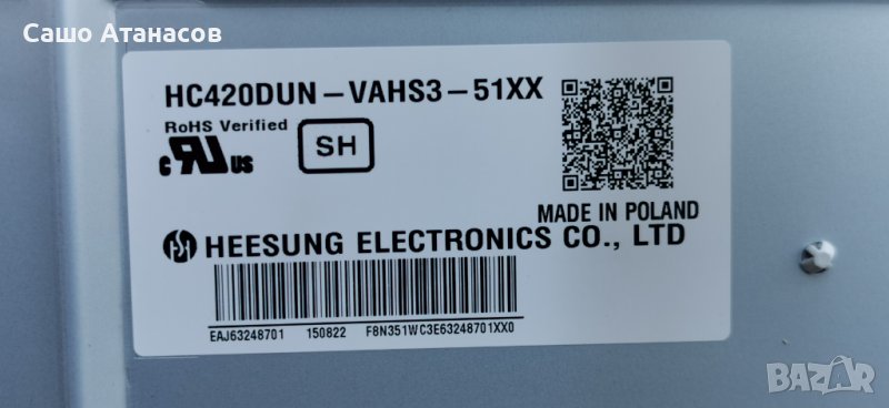 Модули от телевизор LG 42LF580V със счупена матрица (панел HC420DUN-VAHS3-51XX )