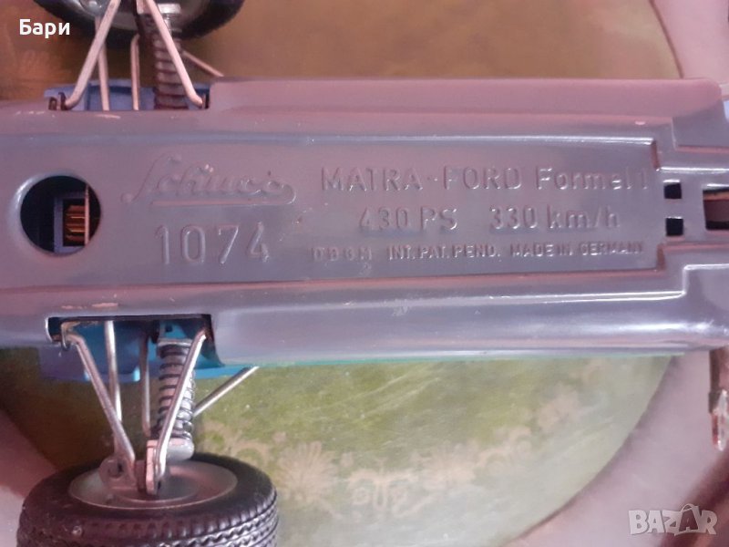 "Schuco Matra Ford 1074 /430 PS Formula 1 Race-Car"Произведена е прибл. през 70-те години на миналия век, в Германия има цвят светлосин металик, перфектно боядисване и стикери без следи от протриване, като цяло в много добро състояние, всички функции са тествани и работят.