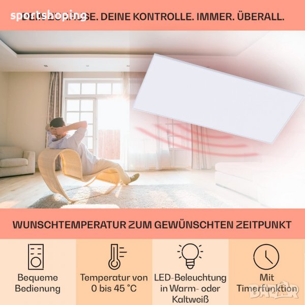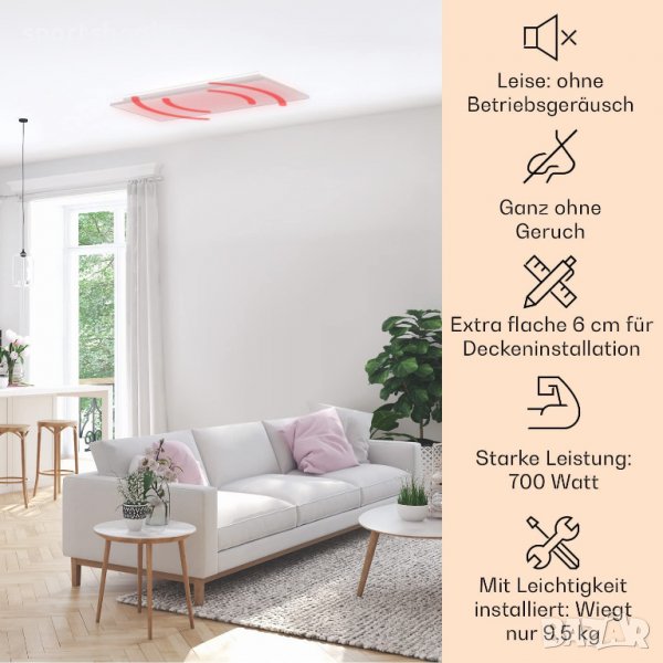- Инфрачервен таванен отоплителен панел с подсветка и термостат