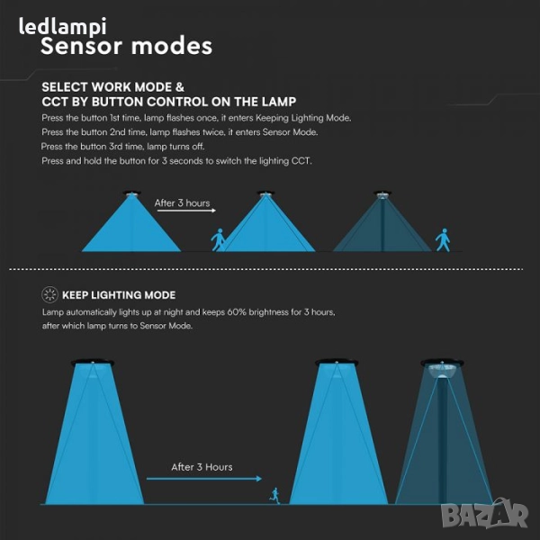 Проектирана с PIR сензор: Обхват на отчитане до 8 метра