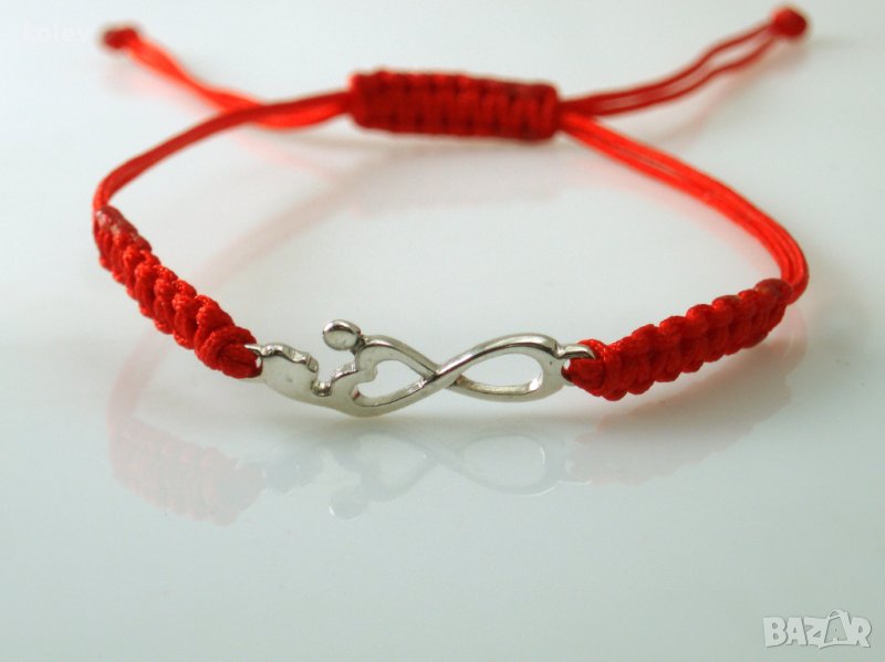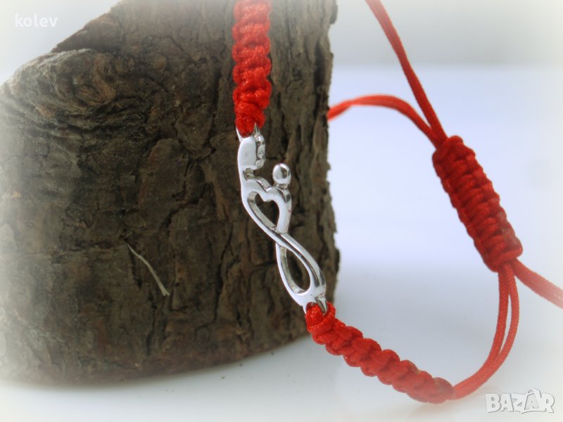 сребърен символ на безкрайната майчина любов в гривна червен конец