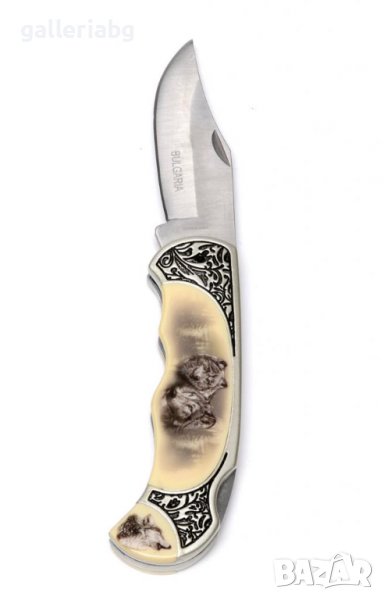 Сувенирен джобен нож, изработен от метал със символ - животно и надпис Bulgaria. Предлага се в красива дървена кутийка.