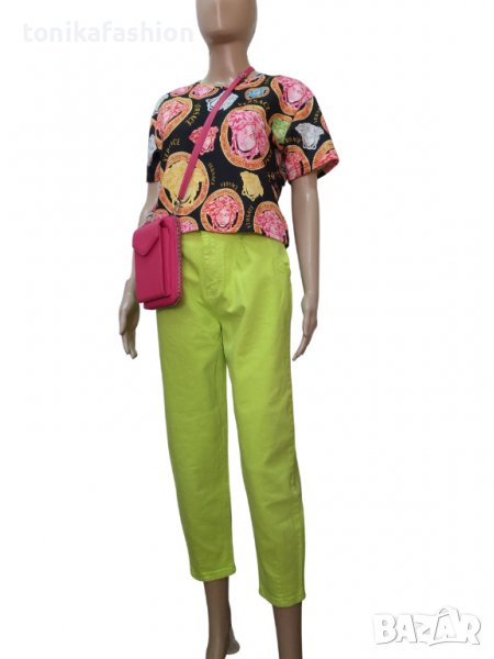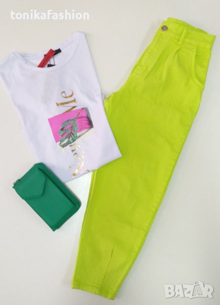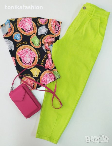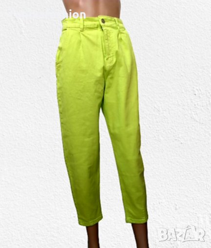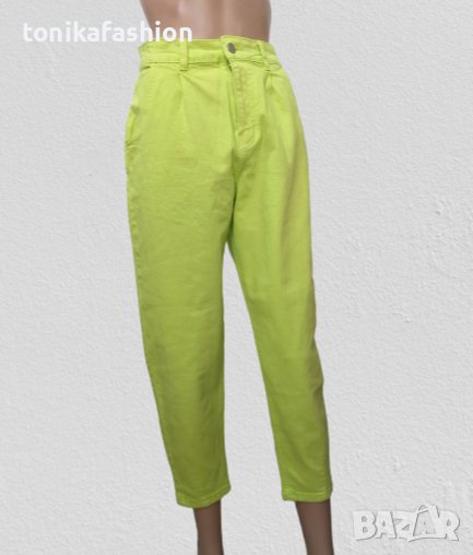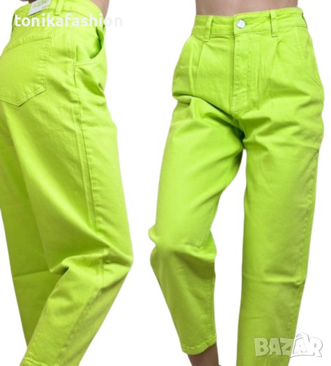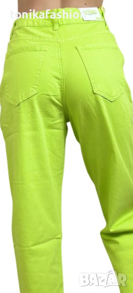 Уникални дънки в неонов цвят с висока талия и скъсена дължина.