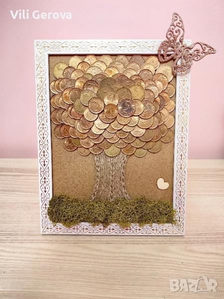 Дървото на парите е ръчно изработено. Може да е с персонализиран или без надпис.
