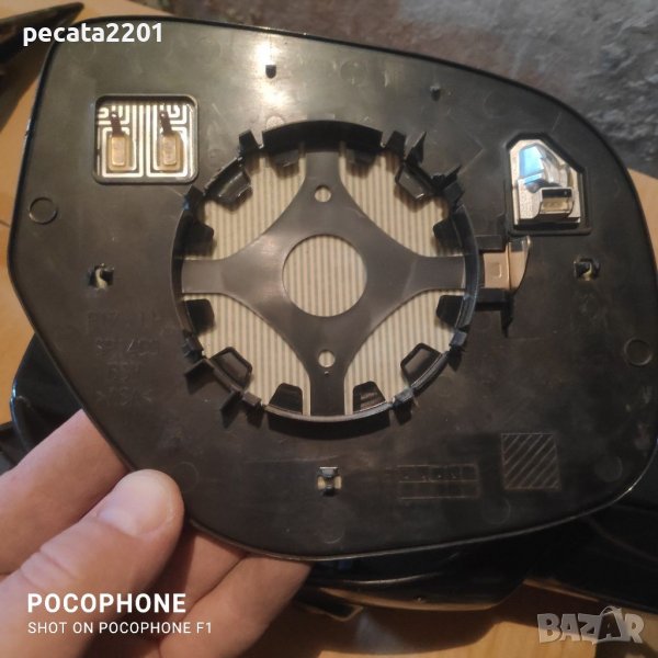 Продавам - оригинално ляво огледало с прибиране за Митсубиши Аутлендър (Mitsubishi Outlander) 2012 г. за части. Огледалото има забележки, посочената е за всичко от снимката, но може да се продаде и на части. Стъклото е с подгрев и мътва зона, моторчето което движи стъклото е здраво, прибирането работи, мигача на огледалото е здраво, външната капачка е здрава, камерата е здрава. Забележките са - основата на която лежи моторчето за регулиране на стъклото има отчупено парченце и моторчето няма как да се задържи (предполагам може да се залепи), пред мигача черната гривна около стъклото е пукната и сурната, долния капак има една пукнатина (всички забележки се виждат на снимките). Оригиналния номер е 026919. Посочената цена - 160 лв е за цялото огледало комплект, за отделни части по договаряне.