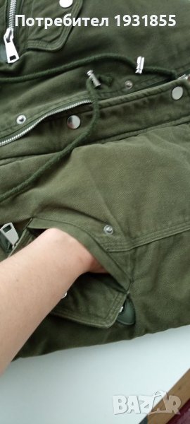 Регулиране в талията със връзки и стопери,двата ципа при гърдите са използваеми долните два също при капаците върху тях циповете са декор