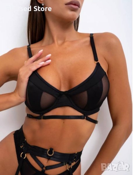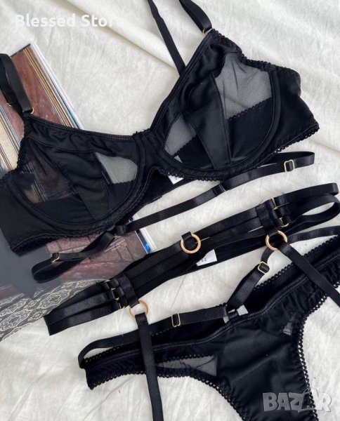 Дамско луксозно бельо в черно. Комплекта се състои от сутиен с банел, чийто плат е от плътна и прозрачна част. Прашки с висока талия и колан за жартиери и жартиери за бедрата. Всички части от комплекта могат да се регулират. Размери S и М. Последната снимка е реална. Бельото се изпраща само с опция преглед поради хигиенна гледна точка и няма опция за замяна. Всички некоректни клиенти ще бъдат докладвани в предназначените за това сайтове и платформи. Нека бъдем отговорни!