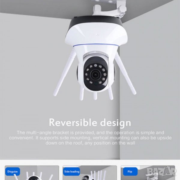 Камера за видеонаблюдение, от телефон, бебефон, микрофон, двупосочен звук, въртяща, 5 антени, IP