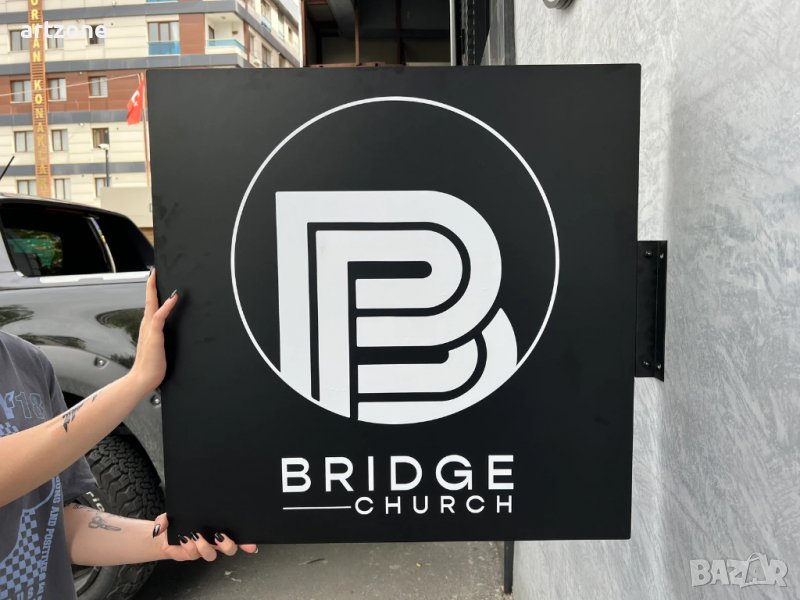 Ефектна Рекламна Двустранна Табела с лого за магазин, ресторант или търговски обект.