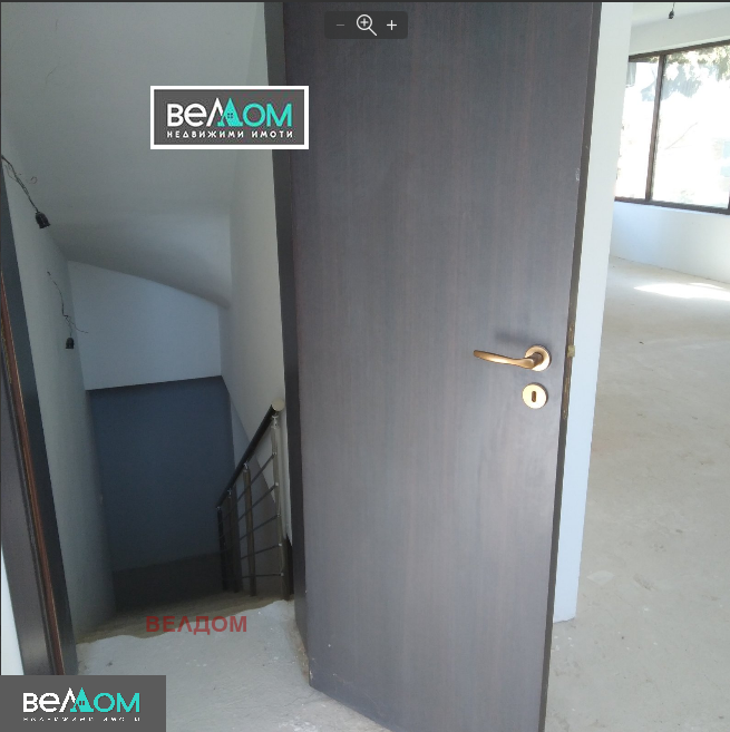 Изложение-изток, юг, югозапад. Къщата е на 4 нива: -изба с винарна, фитнес и работилница; 1-ви ет. -голяма дневна 104 м2 с кухненски бокс, широка лоджия, баня/тоалетна; 2-ри ет.-преддверие, тераса, 2 спални, едната с дрешник, 2 бани, връзка с таванското помещение; 3-ти ет.- таванско помещение open space, със скосени тавани. Намира се в жилищен комплекс с контролиран достъп и приятно озеленяване. По БДС, възможно е довършване след договаряне.