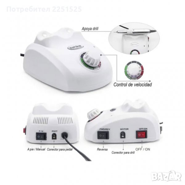 Мощна 65 W, 35 000 оборота Електрическа пила за нокти, маникюр, педикюр