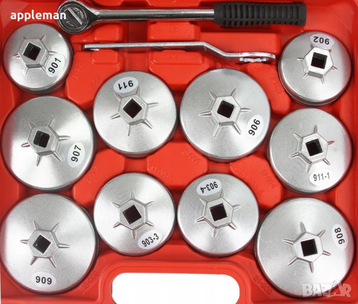 Комплект чашки за маслени филтри + тресчотка и гаечен ключ MARPOL 23 части са предназначени за развиване на маслени филтри на леки и лекотоварни автомобили. Инструментите са изработени от алуминий, който е устойчив на корозия, гарантира издръжливост и дълъг живот на експлоатация. Подходящи са за прилагане на почти всички видове автомобили като Mazda, Volvo, Renault, Honda, Acura, Toyota, Lexus, VW, Opel, Nissan, BMW, Audi, Mercedes, Ford, Porsche, Mitsubishi, Isuzu, Subaru, Saturn, GM и т.н. Комплектът се предлага в пластмасов куфар за по-лесно съхранение и транспорт.