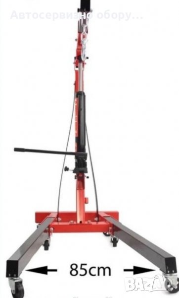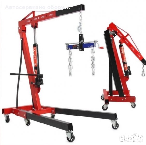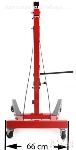 Стабилна конструкция, здрава масивна рамка и куки с вериги. Перфектен за използване в работилници, за демонтаж на автомобилни двигатели или преместване на тежки предмети, устройства и други.