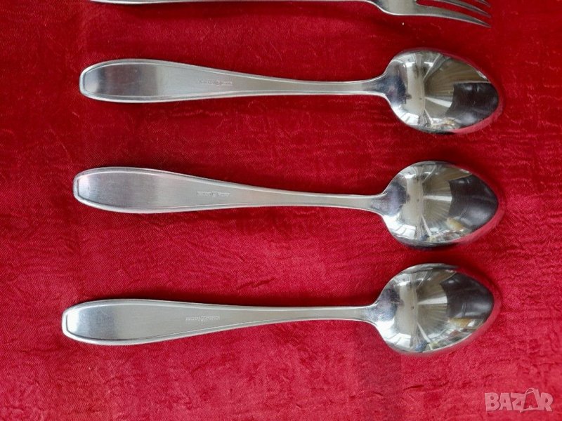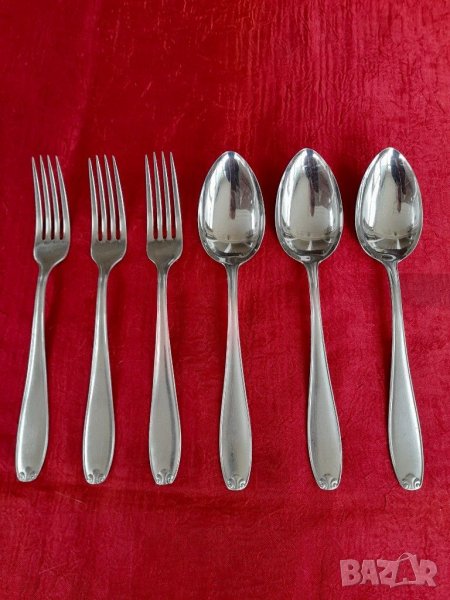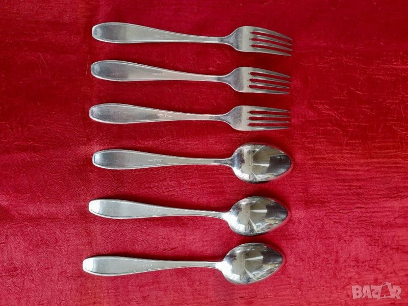 Стари прибори за хранене, състояние видно на снимките изключително запазени никакви следи от употреба, маркирани. По 3 бр.лъжици и вилици, габарити на снимките.