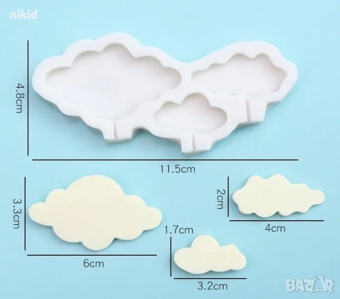 3 облак облака облаци облачета силиконов молд форма фондан близалки гипс декор → Обява 40102225