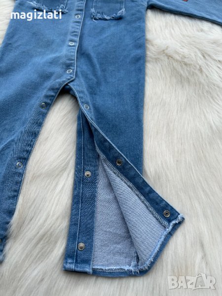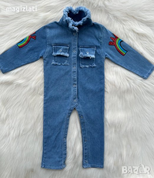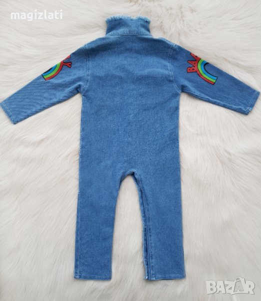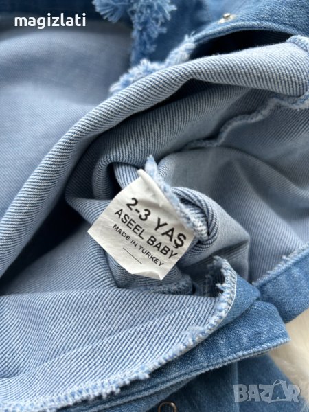 Нов дънков гащеризон по етикет е 2-3 години , но е умален - отговаря за дете ръст 86см. максимум 92см. или премерете и преценете по дадените размери в см.