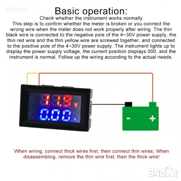 Измерване на напрежение: DC4~30V Грешка: ±1.0V (не се регулира)