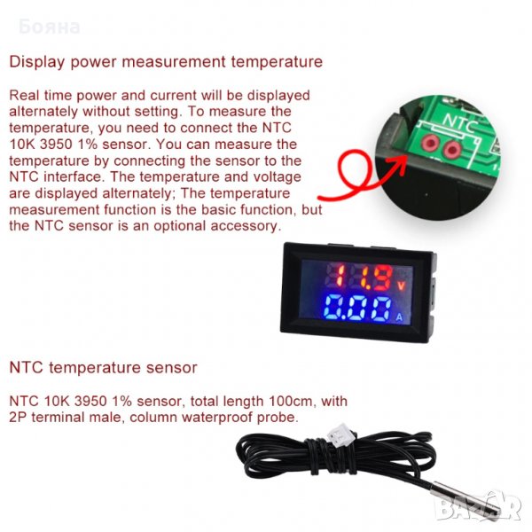 Диапазон на измерване на температурата: -50℃~120℃ Грешка: ±1.7C (не се регулира)