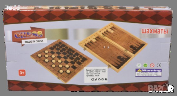 Шах дървен 3 в 1 с фигурки от дърво → Обява 40107053