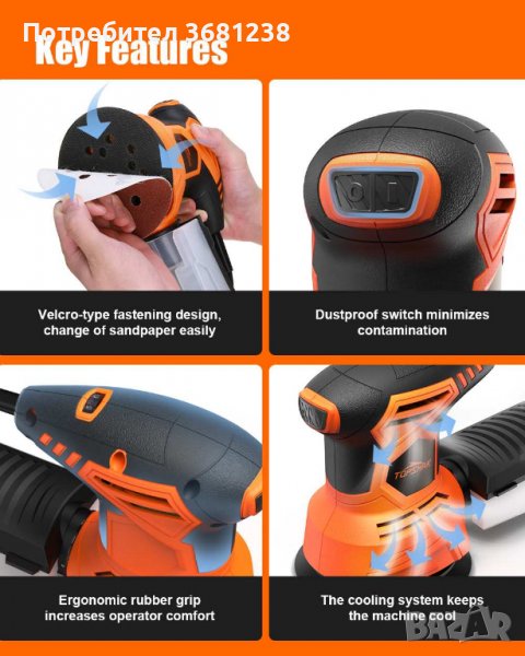 - Дизайн на закопчаване тип велкро, лесна смяна на шкурка.