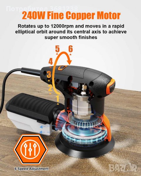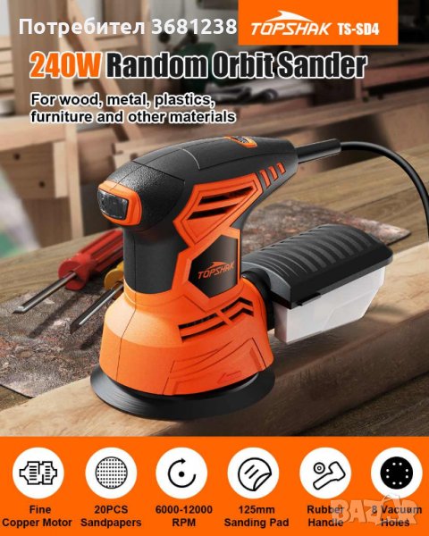 Продавам Електрическа Шлайфмашина – TOPSHAK TS-SD4 240W – Върти се до 12000 об/мин и се движи в бързи елипсовидни орбити около