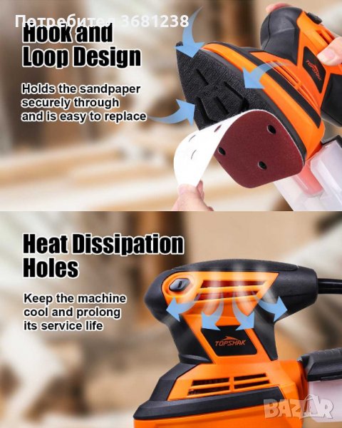 на предмети, по-гъвкаво от произволна орбитална шлайфмашина.