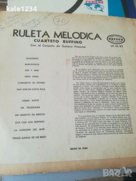 Кубинска музика. Грамофонна плоча. CUBA. Cubana. Ruleta Melodica cuarteto ruffino. → Обява 40110634