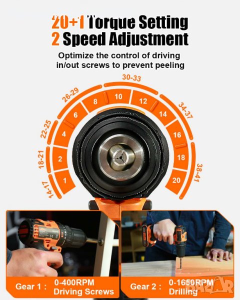 ● 20+1 Настройка на въртящия момент, 2 Регулиране на