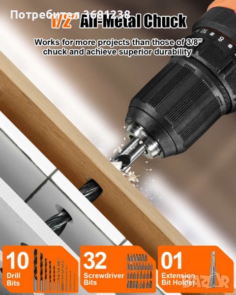 Акумулаторен винтоверт 45 N.m въртящ момент с 1 бр. батерия EU/US щепсел с