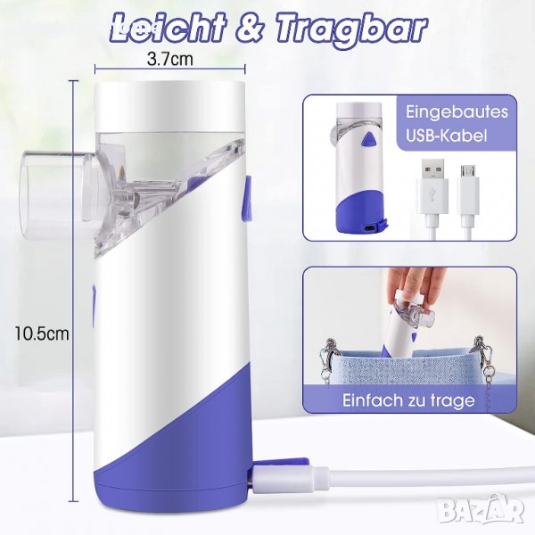Компактен и преносим: много малък и компактен пулверизатор, можете да носите този инхалатор навсякъде, което го прави идеален за използване у дома, в офиса и при пътуване.