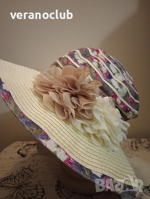 Шапката е разкошна, съчетани са две материи, като цветната част е от текстил.