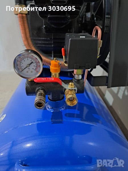 Предпазен клапан, разпределител с два изхода, като единия е през редуцир-вентил, манометър за следене на налягането, бързи куплунги за удобна работа.