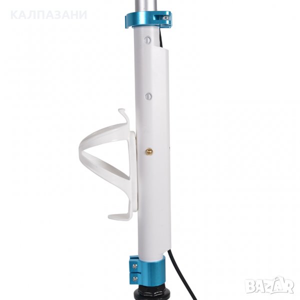 Характеристики: Стягаща скоба 2 болт•Странична стойка•Стойка за бутилка•Сгъваема•Светлоотразител•Ръчна дискова спирачка•Ръкохватка 10 cm•Преден амортисьор•Метална спирачка•Колан за носене•Звънец•Заден амортисьор