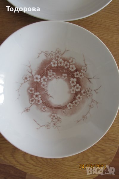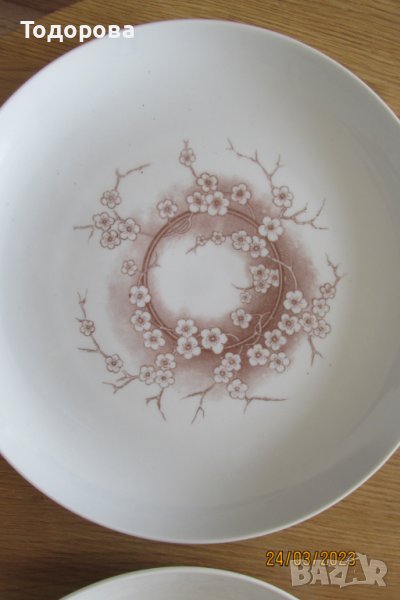 Предлагам порцеланови чинии за хранене с декорация пролетен цвят.
