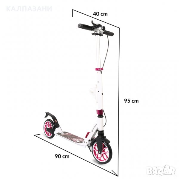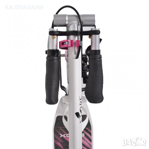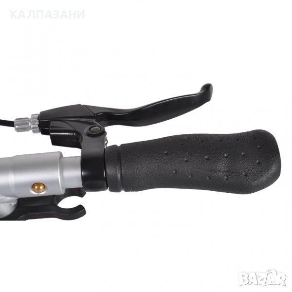 Характеристики: Стягаща скоба 2 болт•Странична стойка•Стойка за бутилка•Сгъваема•Светлоотразител•Ръчна дискова спирачка•Ръкохватка 10 cm•Преден амортисьор•Метална спирачка•Колан за носене•Звънец•Заден амортисьор