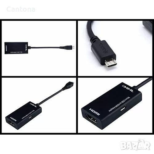 Адаптерът служи за пренос на аудио и видео сигнали от таблети и смартфони и към LCD TV, LED TV, PLASMA TV, проектори, компютри и др.