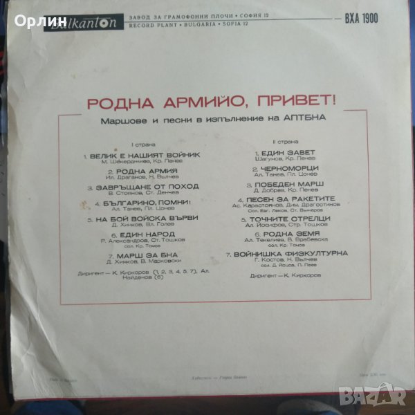 Грамофонна плоча - АПТБНА – Родна Армийо Привет, снимка 1 - Грамофонни плочи - 40121129 Грамофонна плоча - АПТБНА – Родна Армийо Привет, снимка 2 - Грамофонни плочи - 40121129 1/2