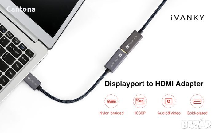 - iVanky DisplayPort към HDMI адаптер осигурява стабилна връзка. Конекторът без резе може да избегне повреда на конекторите, ако забравите да натиснете бутона. Найлоновото плетено яке предлага много по-силна производителност дори при интензивна употреба, без да се притеснявате, че черупката ще излезе. Тънкият и лек корпус от алуминиева сплав има по-добро разсейване на топлината от PVC корпуса и устойчивост на удар.