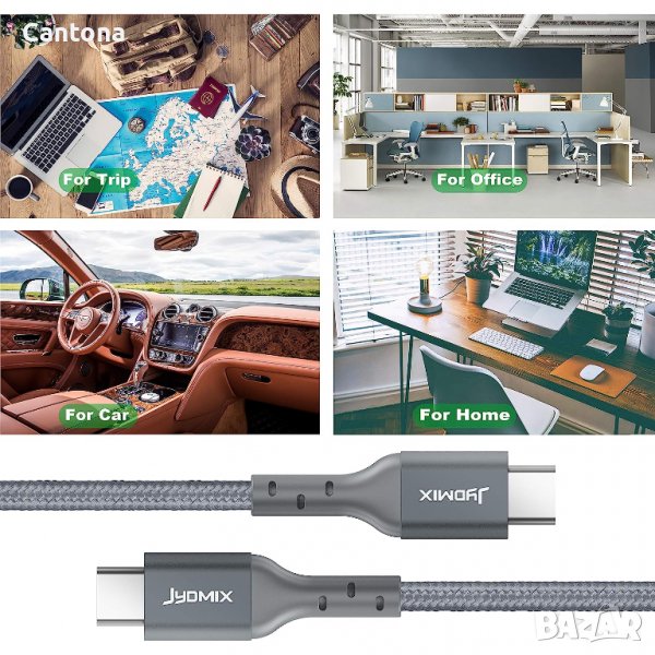 JYDMIX USB C към USB C кабел, PD 3.0 - 20 V/3 A 60 W, 2 метра, найлонова оплетка, бързо зареждане