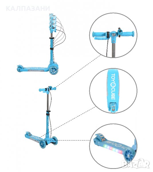 Характеристики: Светещ елемент•Музикално озвучение с пет хитови песни•Звънец•Фар с две функции на светене