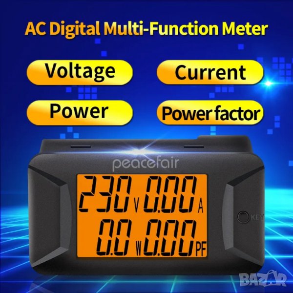 Цифров волтметър за вграждане за променлив ток и голям LCD екран. Може да измерва от 40 до 400 волта и ток до 100 ампера.