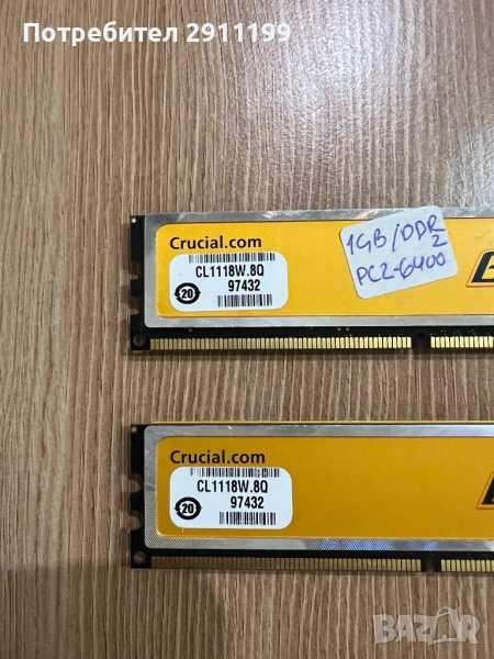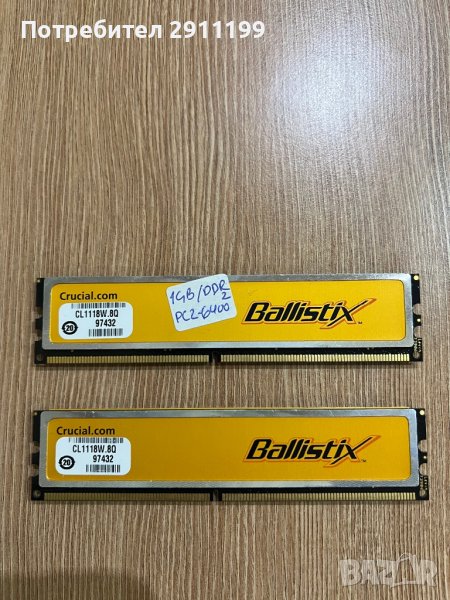 При покупка над 100лв. от профила ми са подарък, само ми кажете че ги искате. 2 платки x 1GB, DDR2, PC2-6400, Crucial Ballistix. Моля вижте снимките за повече детайли. Цената е за двете.