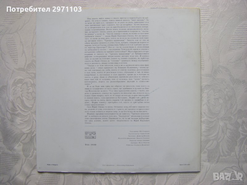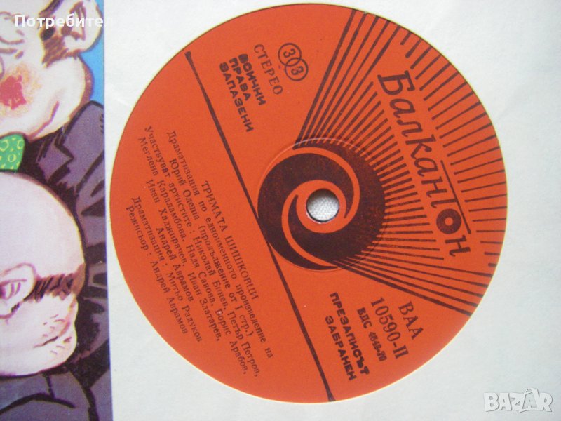 Грамофонна плоча - ВАА 10590 - Тримата шишковци, драматизация по едноименното произведение на Юрий Олеша