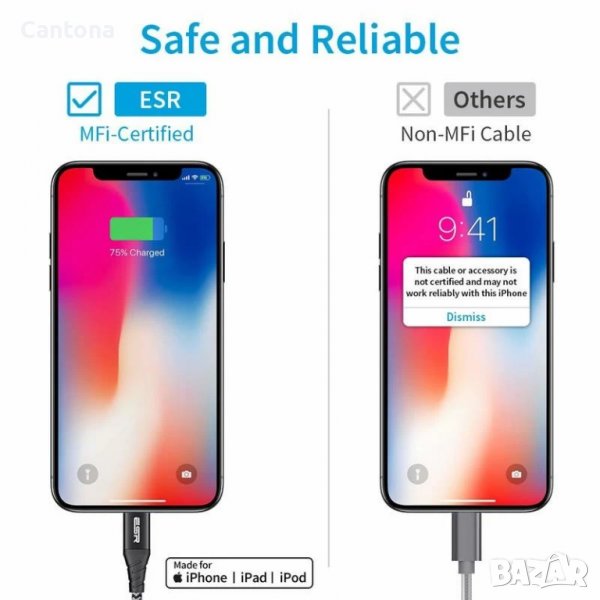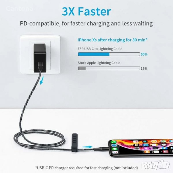 - Този USB-C към Lightning кабел е MFI (Made for iPhone) сертифициран от Apple, за да осигури безопасно, надеждно и бързо зареждане и синхронизиране